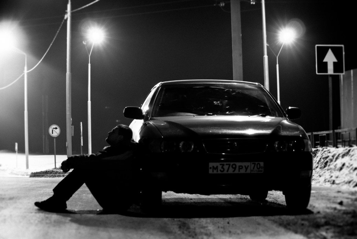 ![Парень возле машины ночью]()